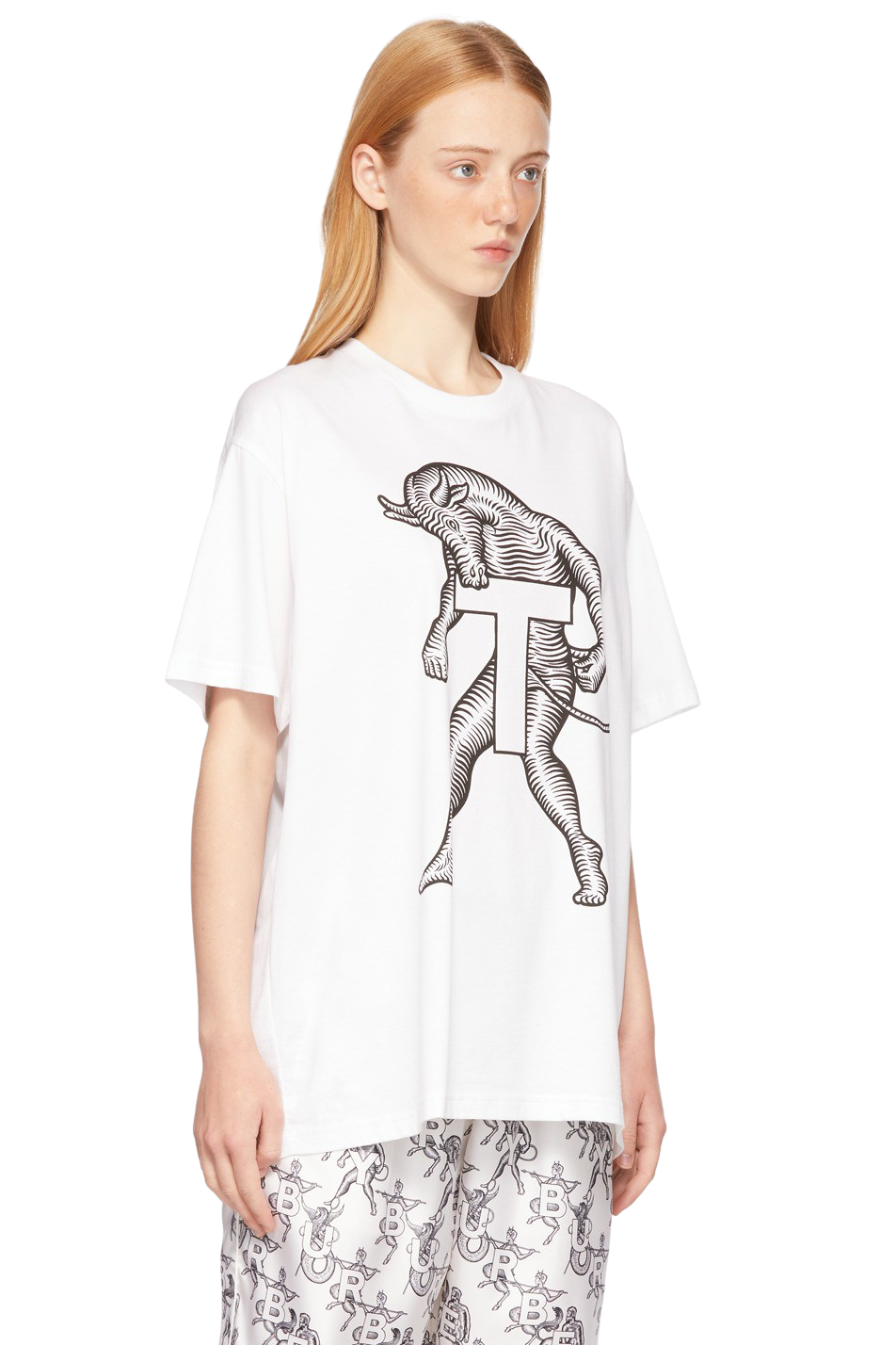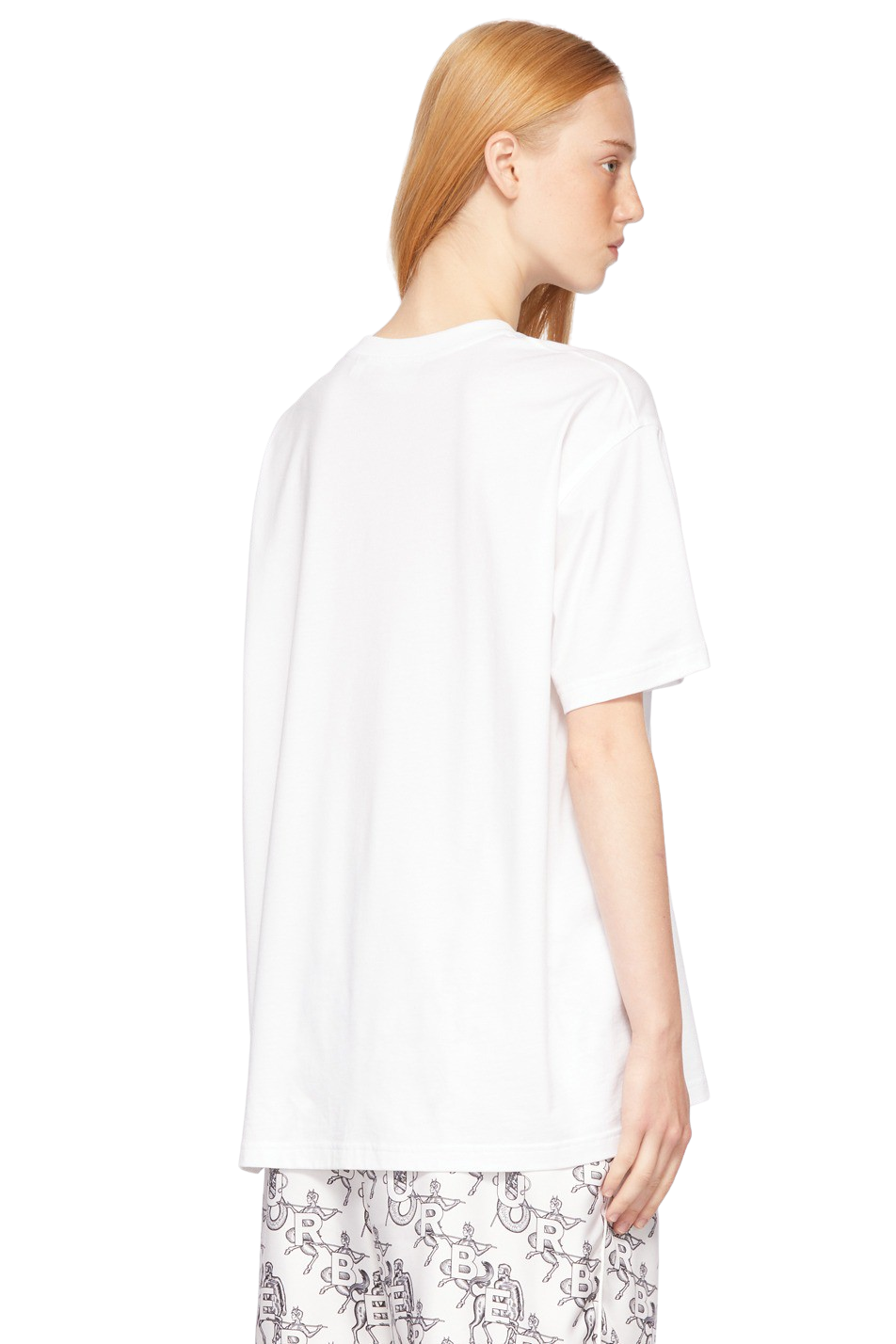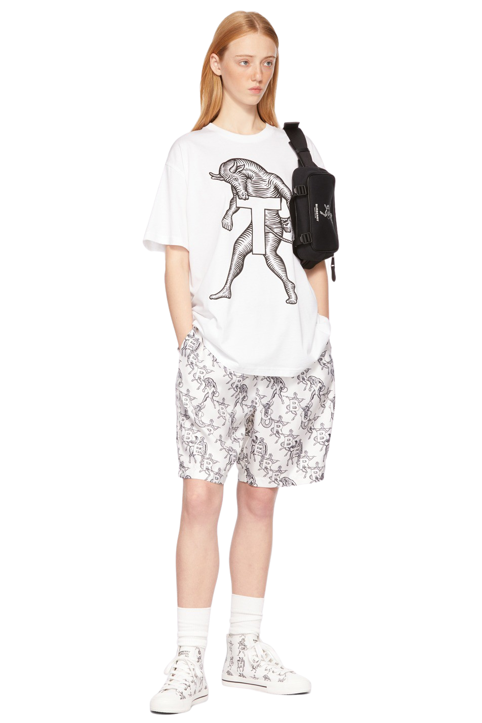 Short sleeve organic cotton jersey T-shirt in white. Rib knit crewneck collar. Graphic printed in black at front.
