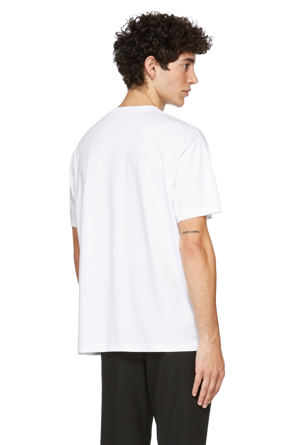 Short sleeve organic cotton jersey T-shirt in white. Rib knit crewneck collar. Logo graphic printed in black at front.